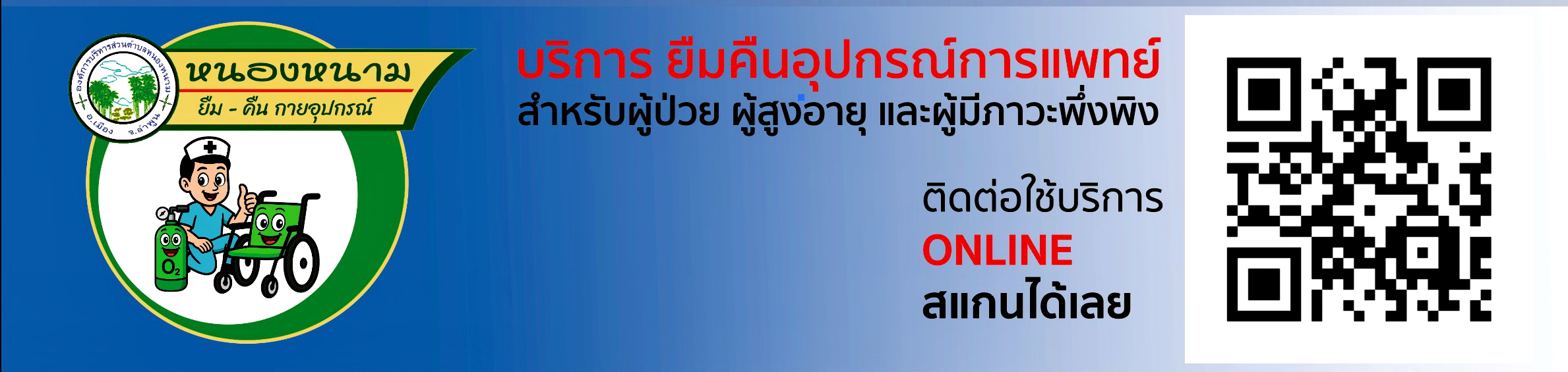 บริการ ยืม - คืน กายอุปกรณ์การแพทย์ เช่น ไม้เท้าสี่ขา เครื่องอ๊อกซิเจน เตียงฯ